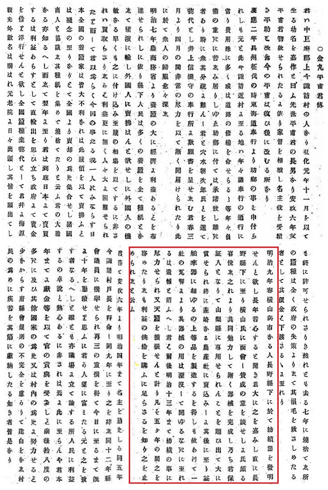 上に書いた「仮約定書」の契約者である金丸平甫に関して、「山梨縣人物伝」に以下の記述がある。